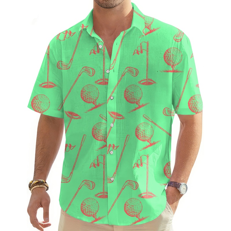 Green Golf Club-Men’s Golf Hawaiian Shirts Button Down Shirt
