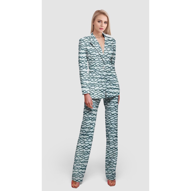 Green Irregular Wavy Lines Women’s Blazer Casual Work Office Blazer Suit set