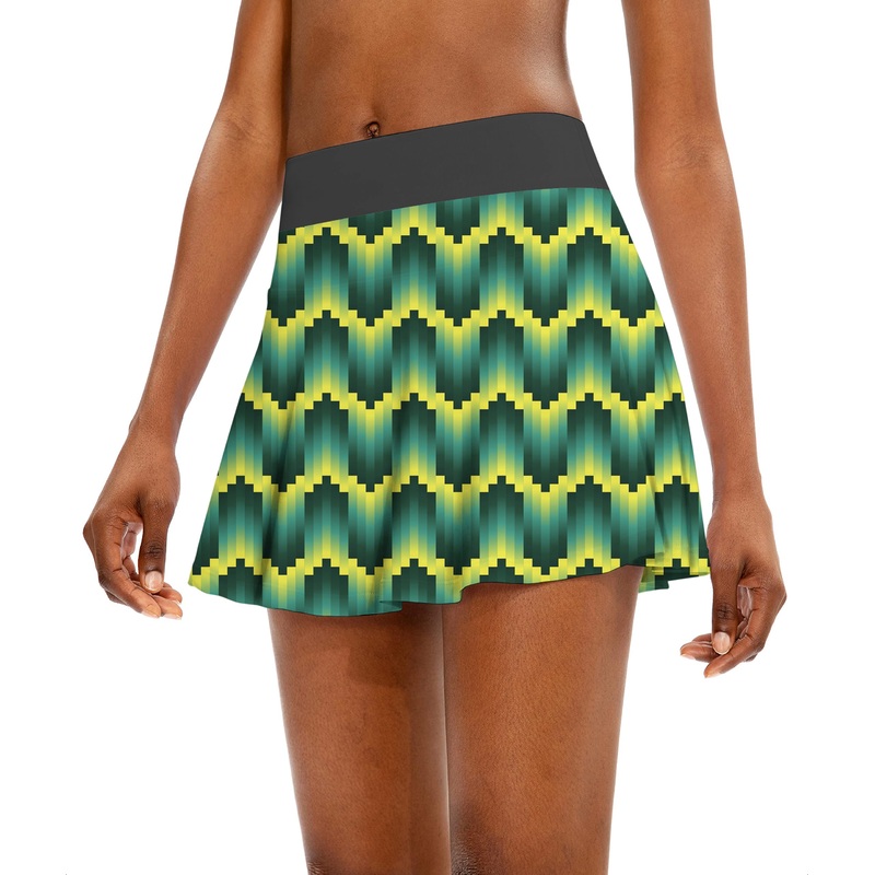 Green Ripples Custom Sport Team Competition Uniforms Women’s Athletic Golf Skorts Flared Skirts