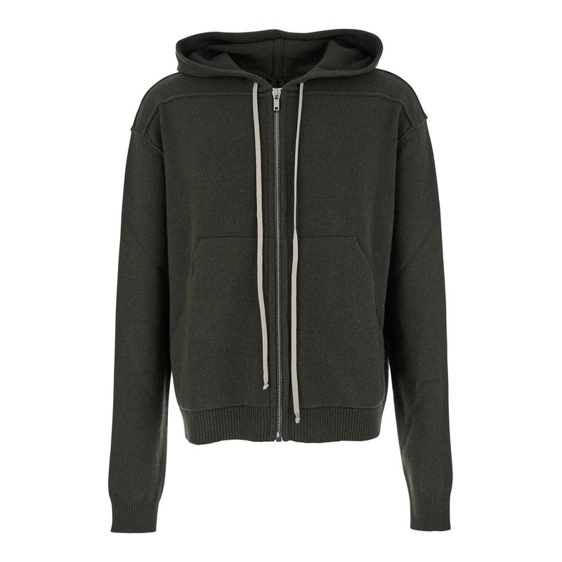description" content=" sweatshirt green contrasting drawstring hood long sleeves front zip closure one kangaroo pocket on the front straight hem ribbed trims cashmere and wool re ...
