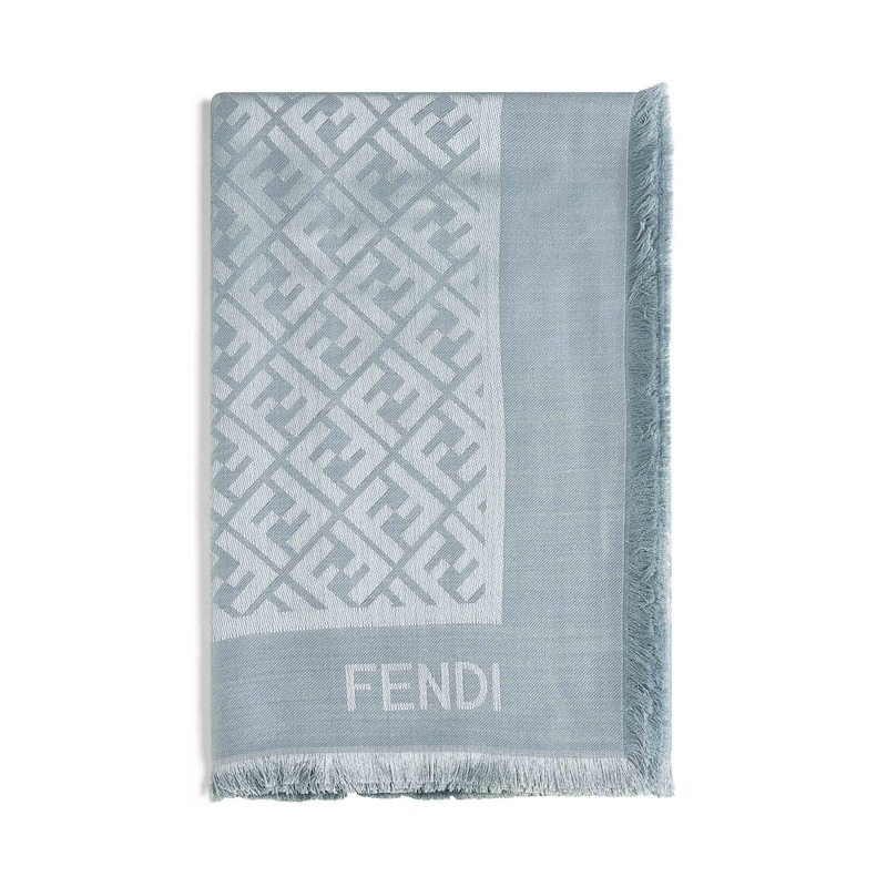 Frayed edgesJacquard Fendi lettering at bottomAll-over jacquard FF motifSquare design140 X 140 cmGreen color60% Silk, 40% WoolMade in Italy