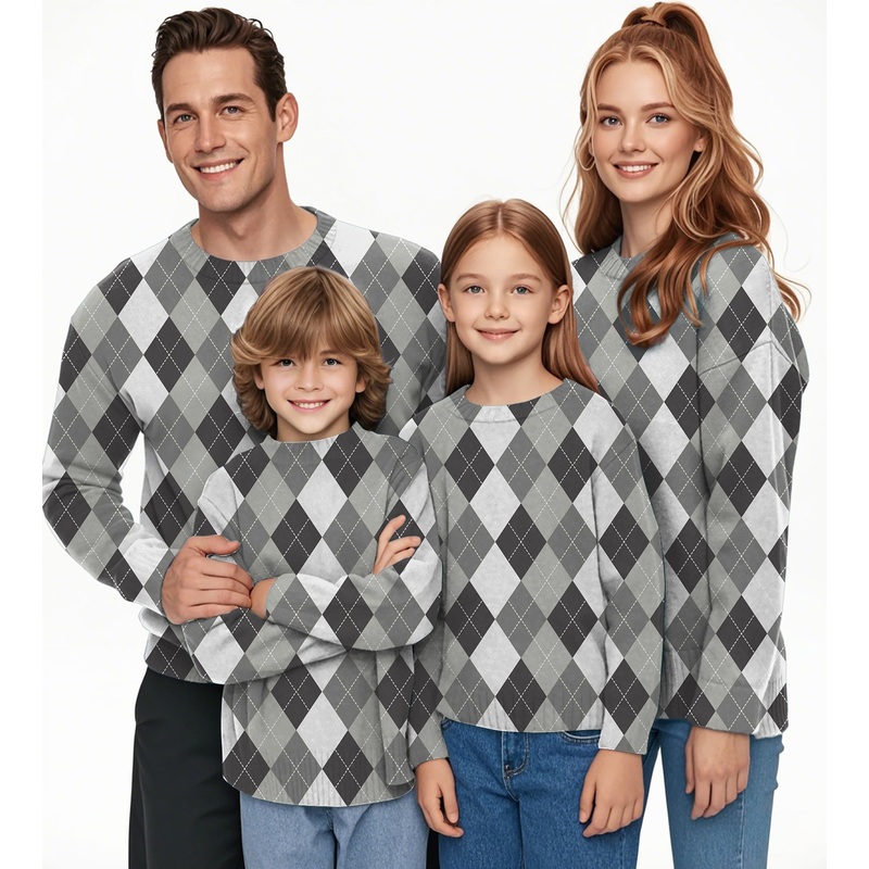 grey Argyle Crewneck Pullover Ugly Sweater Men Women boy girl family