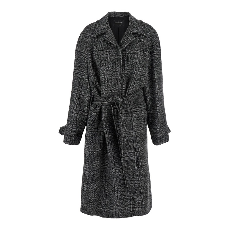 description" content=" coat grey wide notched revers raglan sleeves front belt closure two side pockets rear single vent all-over check motif wool regular fit - Shop online on Ga ...