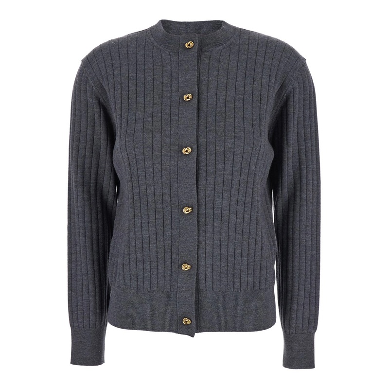 description" content=" cardigan grey crewneck long sleeves front knot buttons closure straight hem gold tone metalware ribbed knit wool regular fit - Shop online on Gaudenzi Bout ...