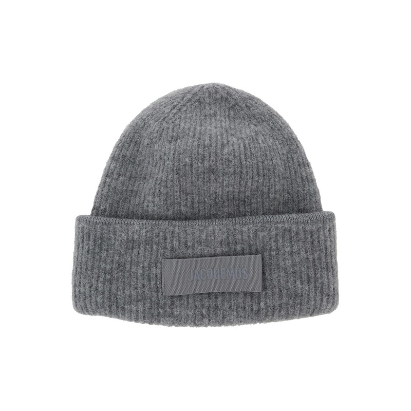 Grey ‘Le Bonnet Gros Grain’ with Logo Patch on the Brim in Cashmere and Wool Man