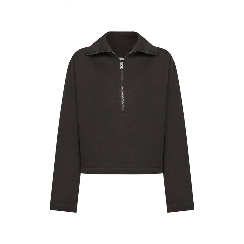 Front partial zip closure High roll-neck Long sleeves, dropped shoulders Straight hem Straight fit Grey color 65% Wool, 35% Cotton Made in Portugal