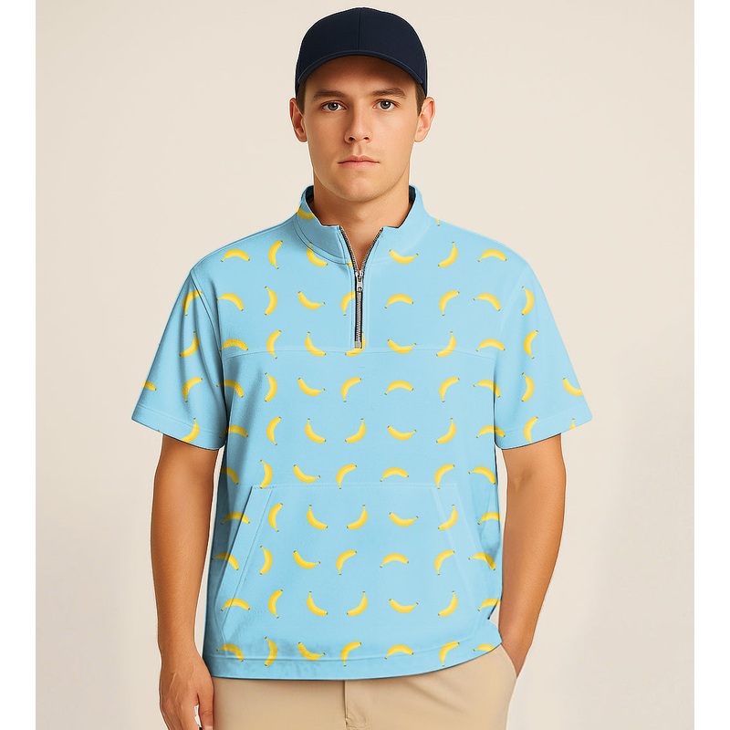 Half Zipper Turtleneck Golf Short Shirt banana Embroidery