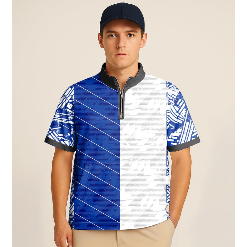 Half Zipper Turtleneck Golf Short Shirt Blue Stitching Custom Sport Team Competition Uniforms Embroidery