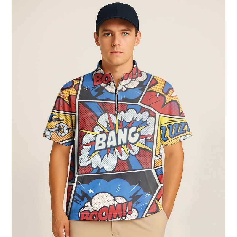 Half Zipper Turtleneck Golf Short Shirt COMICS Embroidery