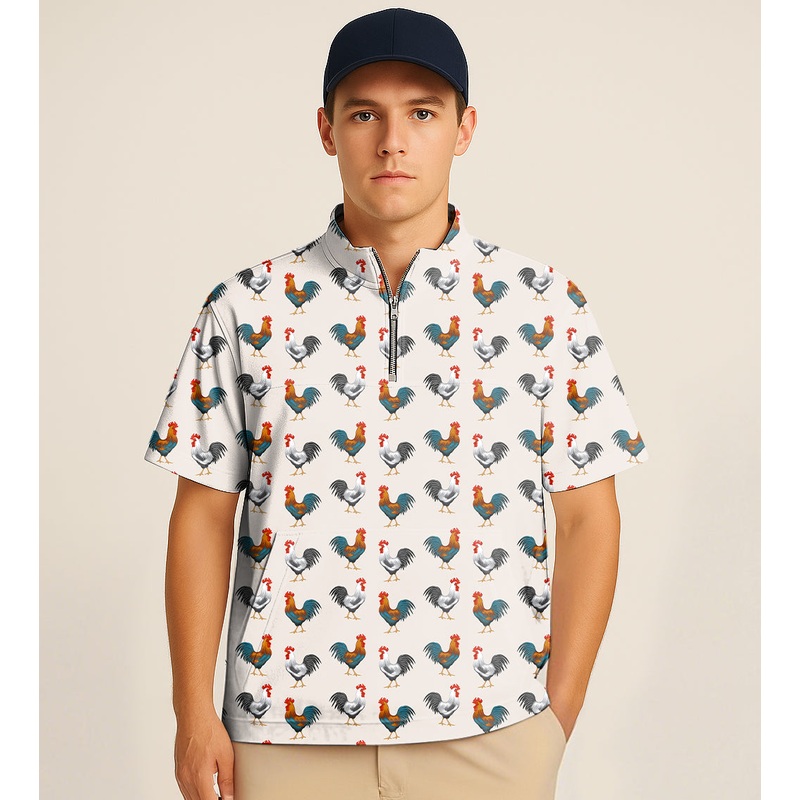 Half Zipper Turtleneck Golf Short Shirt Mr. Cocky Embroidery