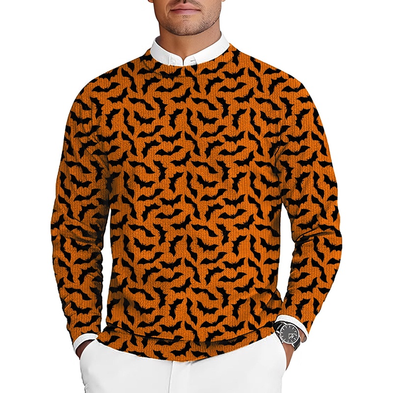 Halloween Bat Custom The Background Color Men’s Golf Crewneck Pullover Sweaters Ugly Sweater