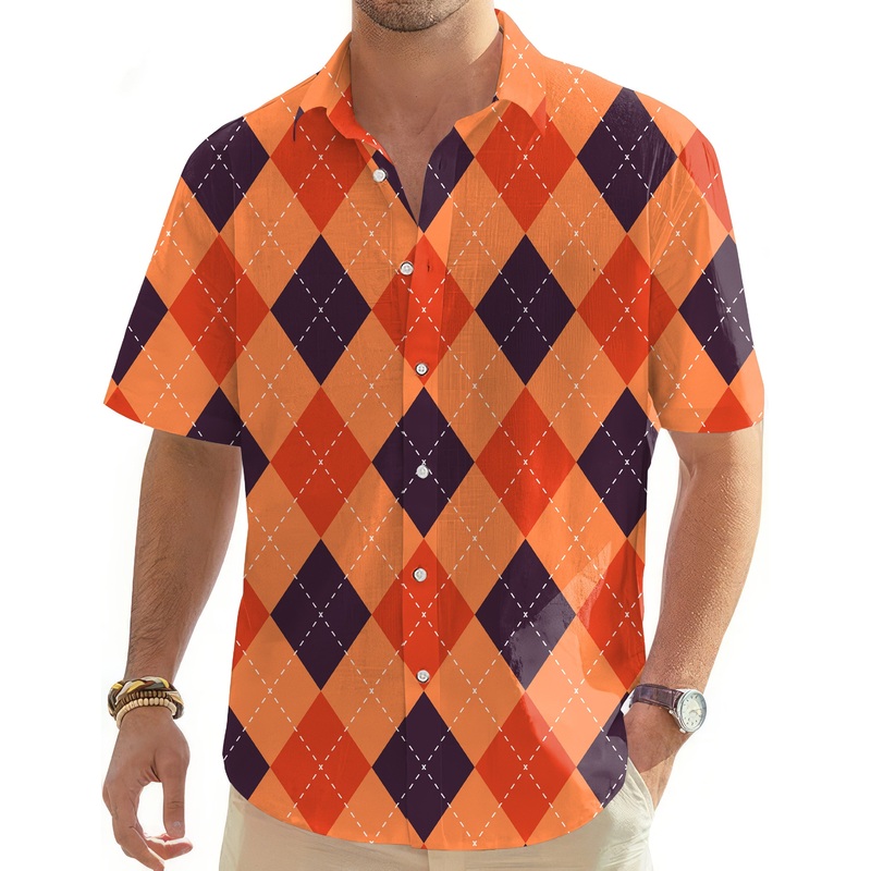 Halloween Black Red Orange Argyle Men’s Golf Hawaiian Shirts Button Down Shirt