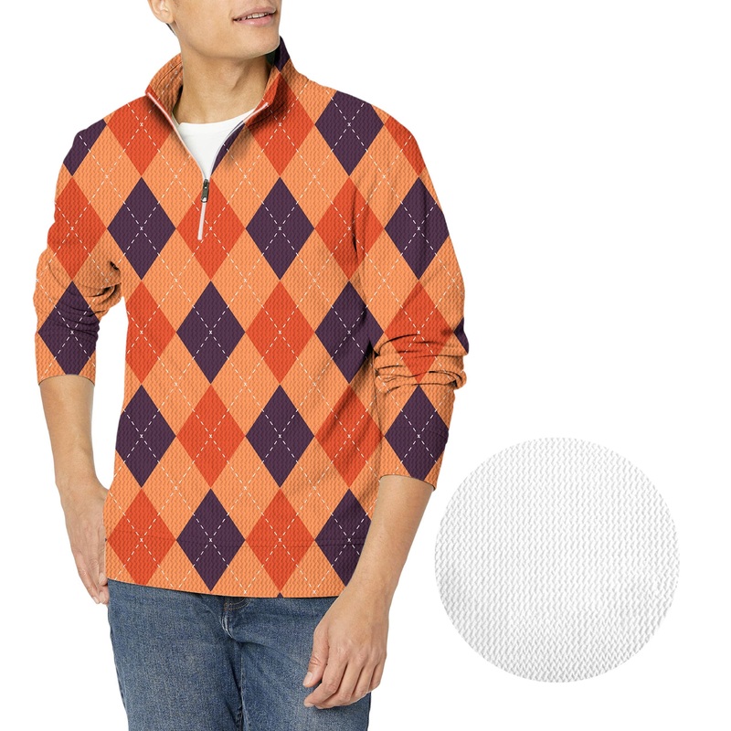 Halloween Black Red Orange Argyle Men’s Golf Waffle Zipper Pullover