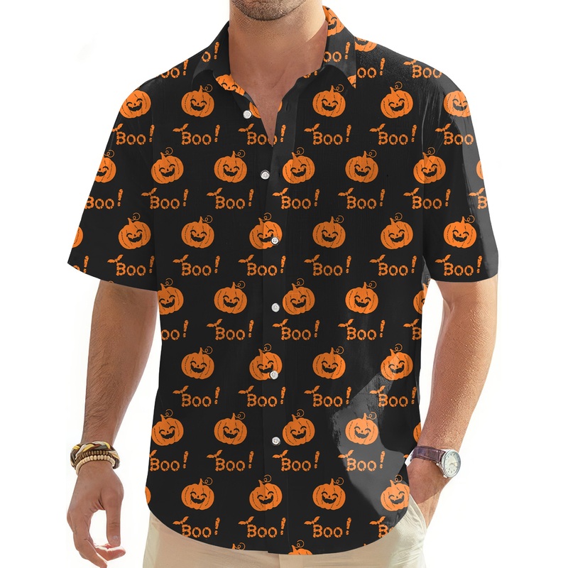 Halloween Boo Pumpkin Men’s Golf Hawaiian Shirts Button Down Shirt