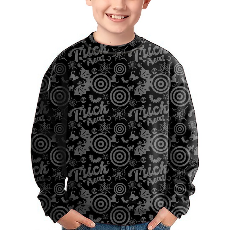 Halloween Circle Bat Cat Crewneck Pullover Kids Ugly Sweater