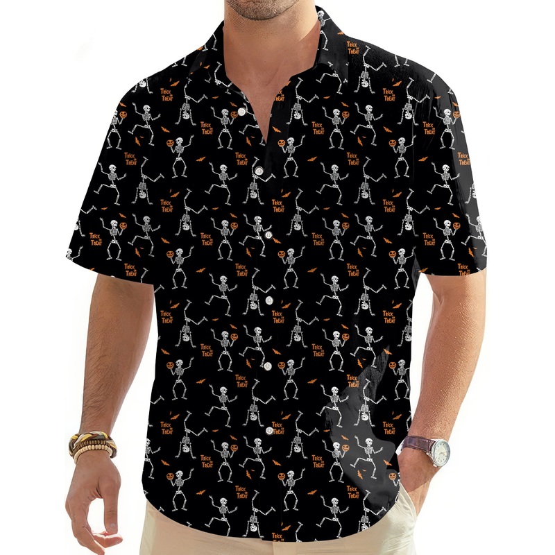 Halloween Dancing Skeletons Men’s Golf Hawaiian Shirts Button Down Shirt