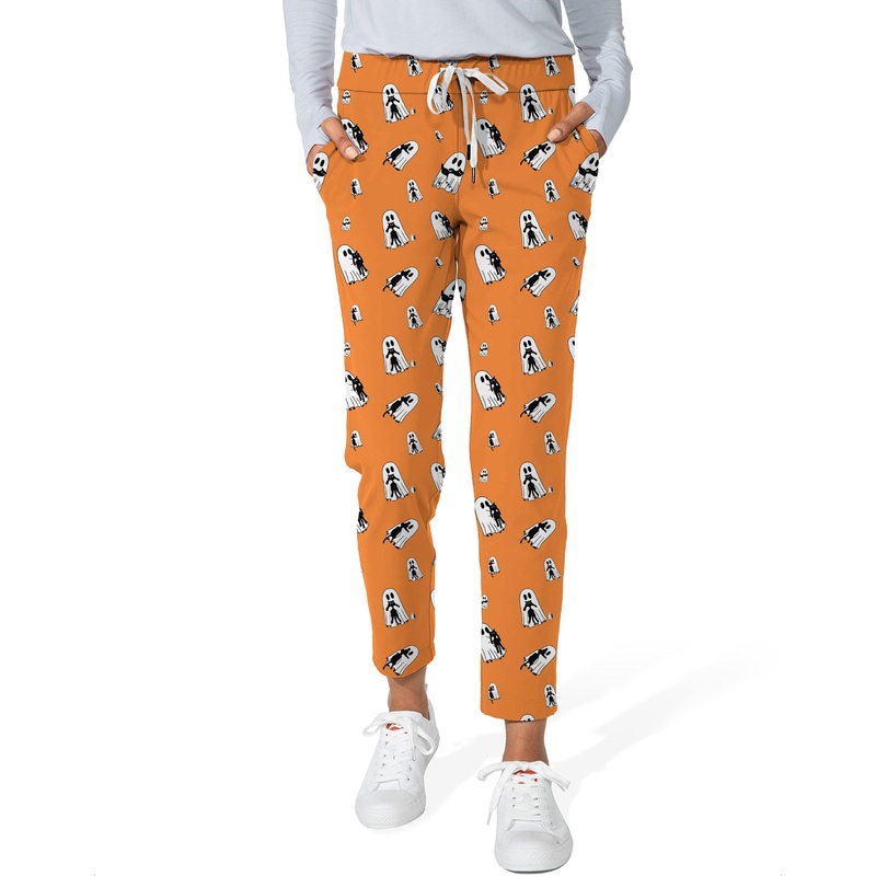 Halloween Ghost Hug Cat Custom The Background Color Women’s 7/8 Stretch Ankle Golf Pants