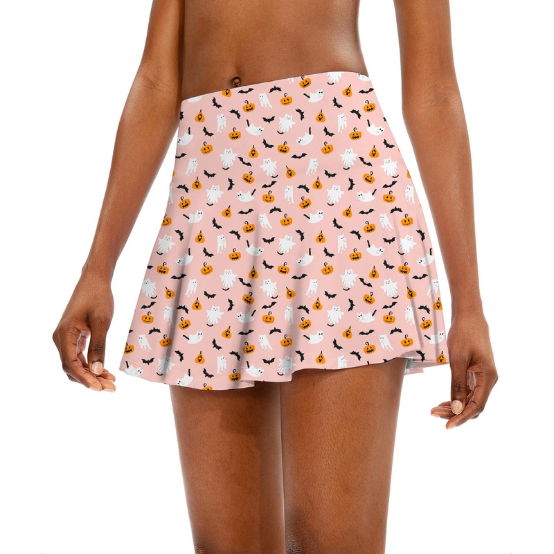 Halloween Kawaii Ghost Pumpkin Women’s Athletic Golf Skorts Flared Skirts