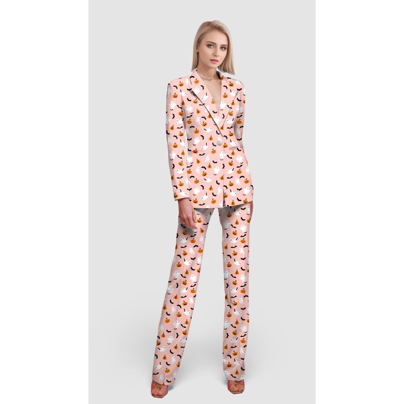 Halloween Kawaii Ghost Pumpkin Women’s Blazer Casual Work Office Blazer Suit set