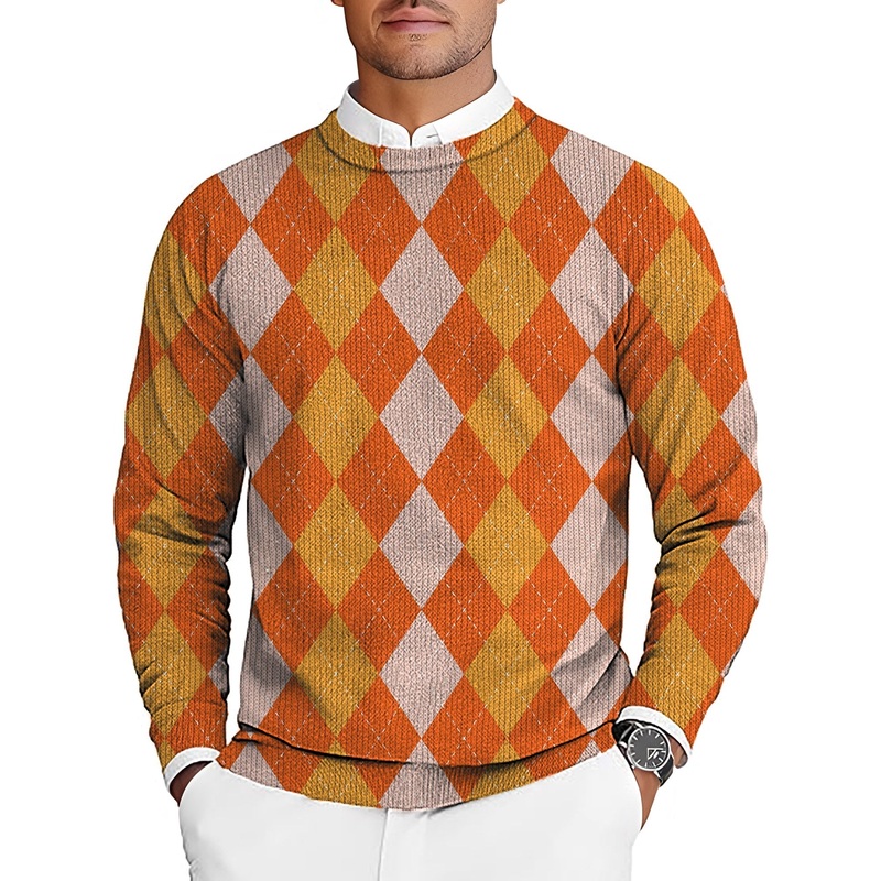 Halloween Orange Apricot Argyle Men’s Golf Crewneck Pullover Sweaters Ugly Sweater
