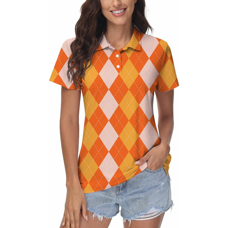 Halloween Orange Apricot Argyle Women’s Golf Polo