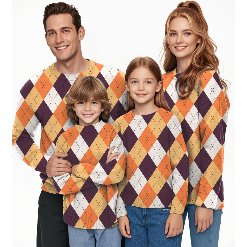 Halloween Orange White Brown Argyle Crewneck Pullover Ugly Sweater Men Women boy girl family