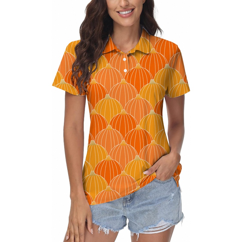 Halloween Thanksgiving Pumpkin Bones Women’s Golf Polo