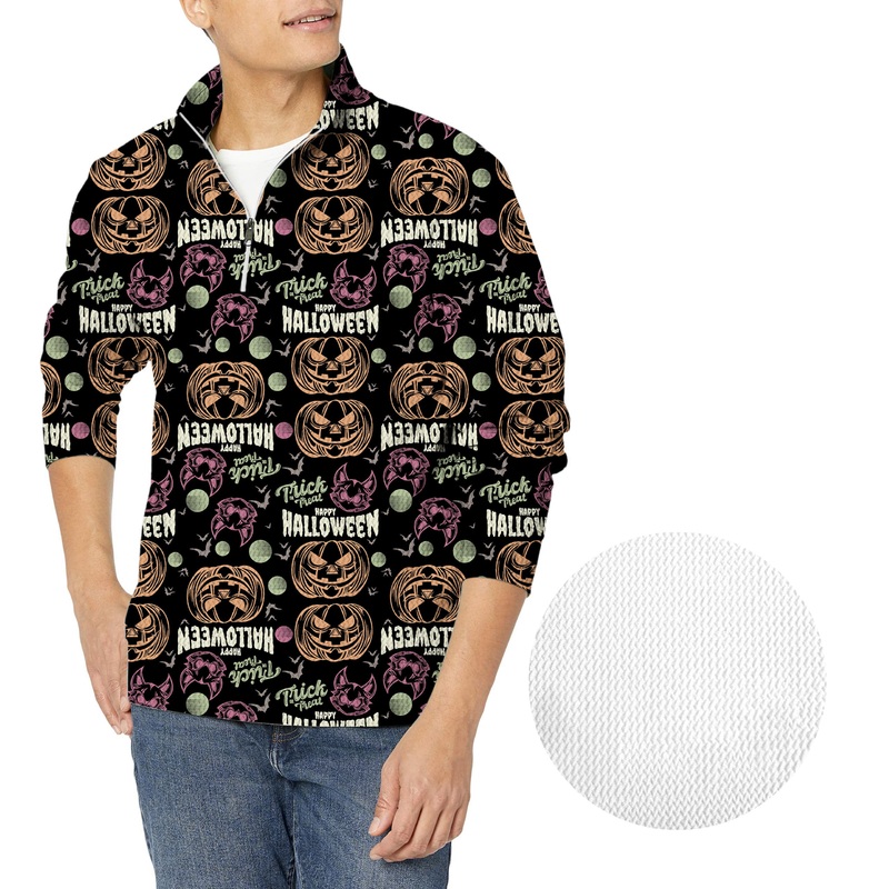 Happy Halloween Colorful Pumpkin Men’s Golf Waffle Zipper Pullover