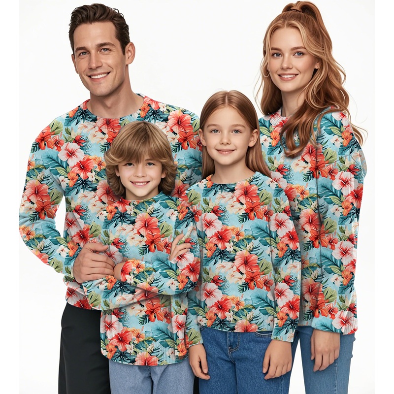 Hawaiian Flowers Crewneck Pullover Ugly Sweater Men Women boy girl family