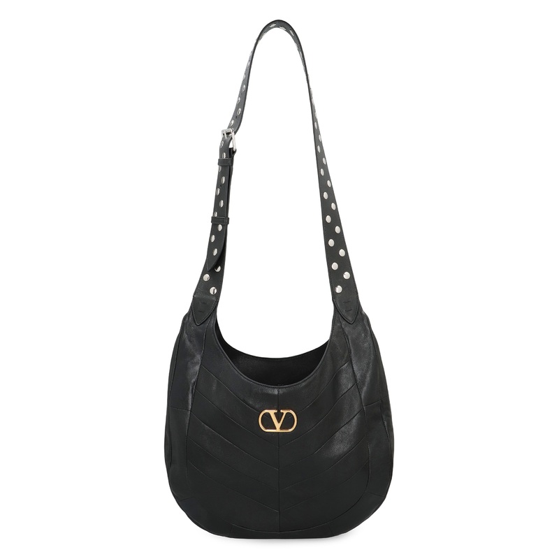 Elevate your everyday style with the Valentino Garavani HOBOHO Medium Leather Hobo Bag, a luxurious accessory that seamlessly blends sophistication with functionality. Crafted in rich black leather, this medium-sized hobo features the iconic Valentino logo