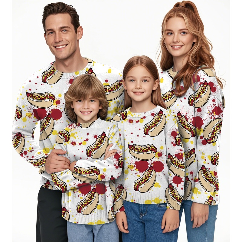 Hot Dog Crewneck Pullover Ugly Sweater Men Women boy girl family