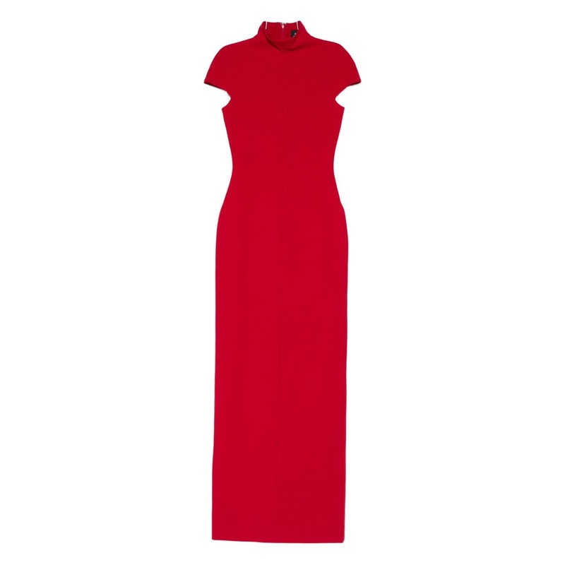 Introducing the Lang Maxi Dress by SOLACE London, a stunning statement piece that exudes sophistication and modern elegance. This striking red maxi dress features a flattering bodycon silhouette with a high turtle neckline and chic cap sleeves, creating a sleek and refined look.