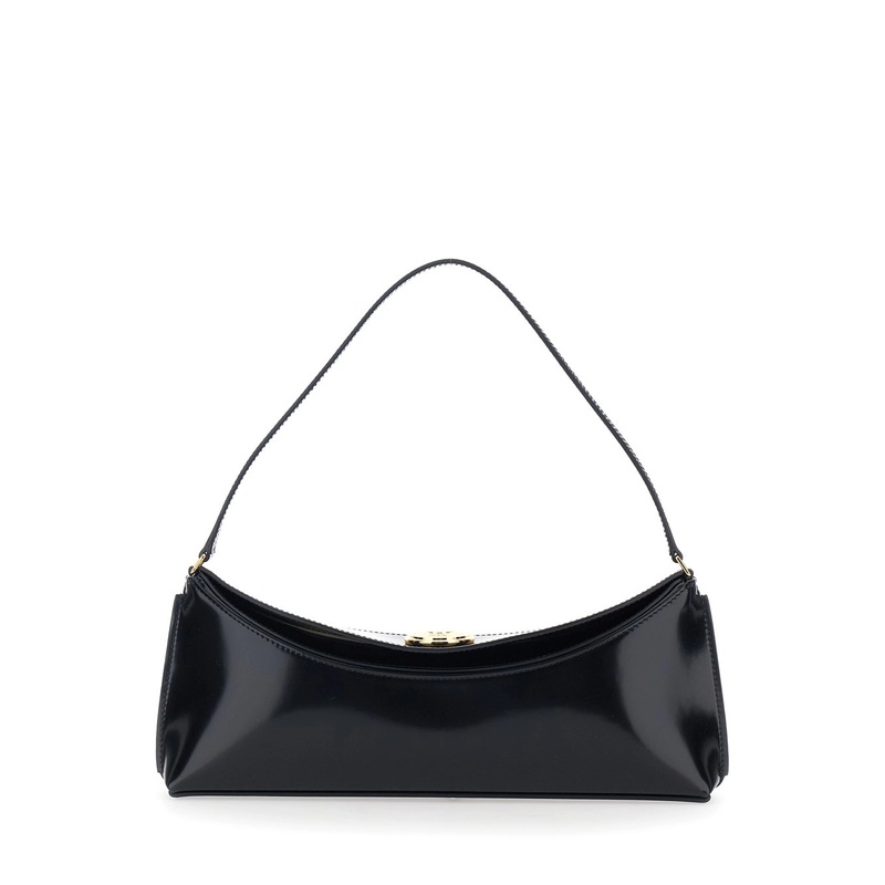 ‘Le Calisso’ Black Shoulder Bag with Engraved Snap Button in Leather Woman