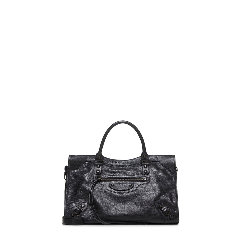'Le City Bag M' handbag in lamb leather Fixed double handles Top zip closure Stud detailing with brass finish Front zip pocket Adjustable and removable shoulder strap Color: Black Size & Fit: W 38.5 x H 24 x D 13.5 cm Material: 100% lamb leather (Ovis Arie