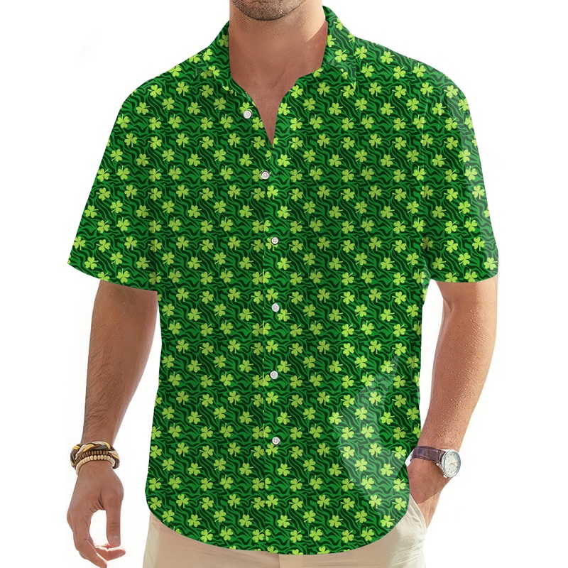 Leaf clover Green zebra St. Patrick’s Day-Men’s Golf Hawaiian Shirts Button Down Shirt