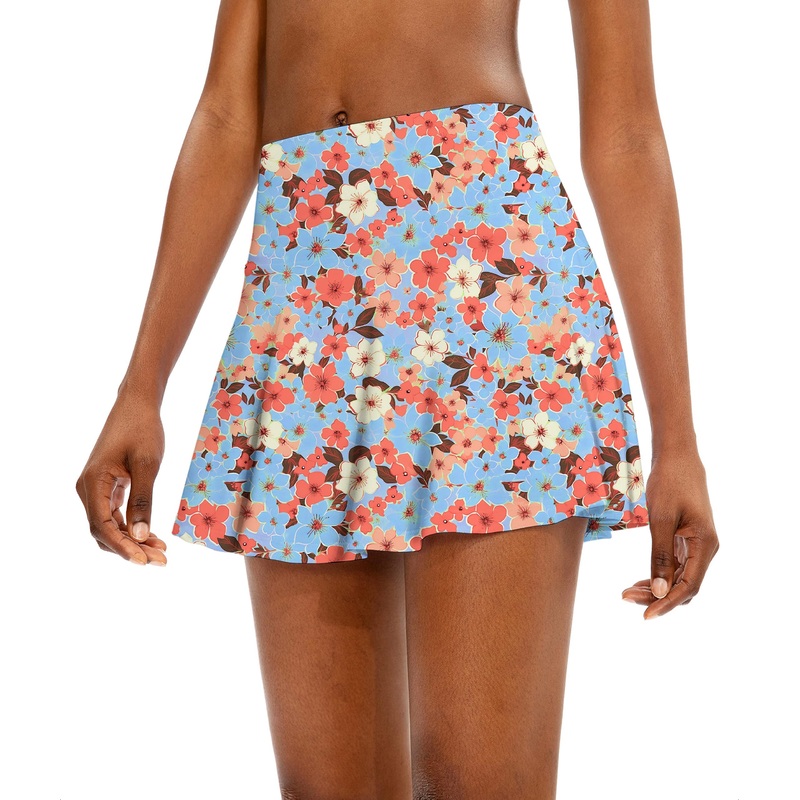 Light Tropical flowers Women’s Athletic Golf Skorts Flared Skirts