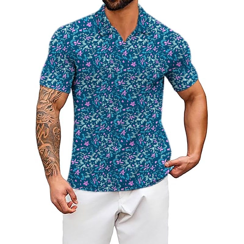 Men’s Blooming Blue V Neck Golf Polo Shirts