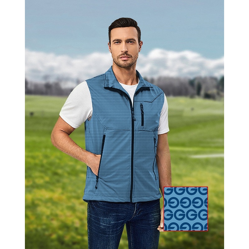 Men’s Blue G Lightweight Softshell Vest Sleeveless Jacket for Golf Windproof Waterproof