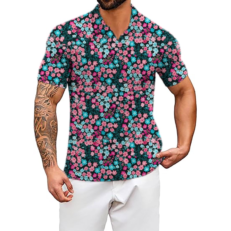 Men’s Candy Blossoms V Neck Golf Polo Shirts