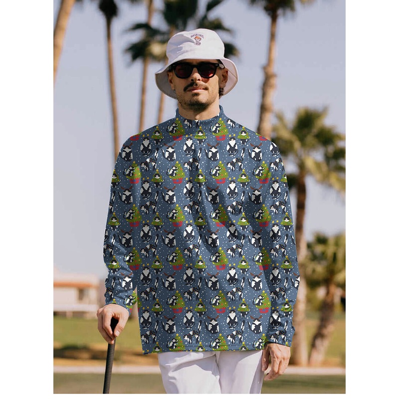 Men’s Christmas black and white cat Pullover High neck Long/Short sleeve T-Shirt