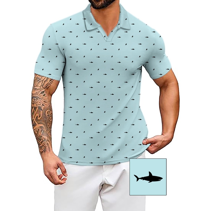 Men’s Coconut Palm Black Shark and Fin Custom The Background Color V Neck Golf Polo Shirts