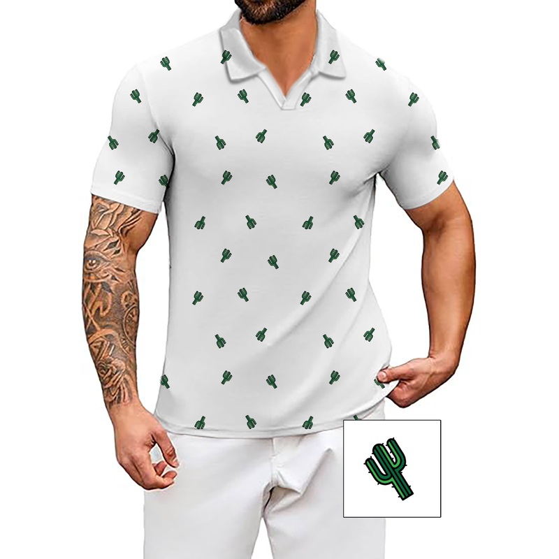 Men’s Coconut Palm Cactus Custom The Background Color V Neck Golf Polo Shirts