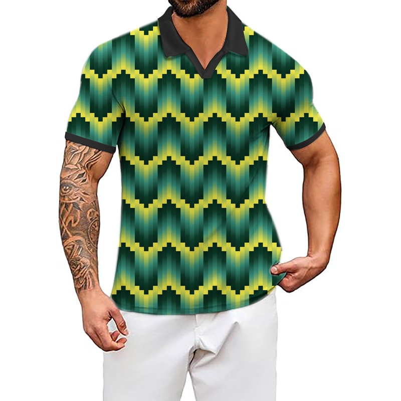 Men’s Coconut Palm Green Ripples Custom Sport Team Competition Uniforms V Neck Golf Polo Shirts
