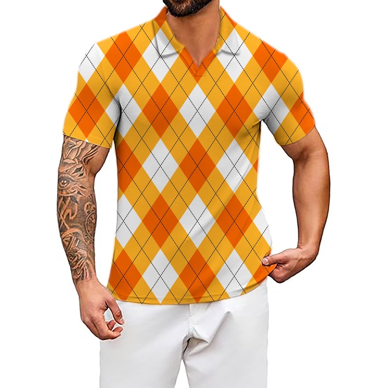 Men’s Coconut Palm Halloween Cross Orange White Argyle V Neck Golf Polo Shirts
