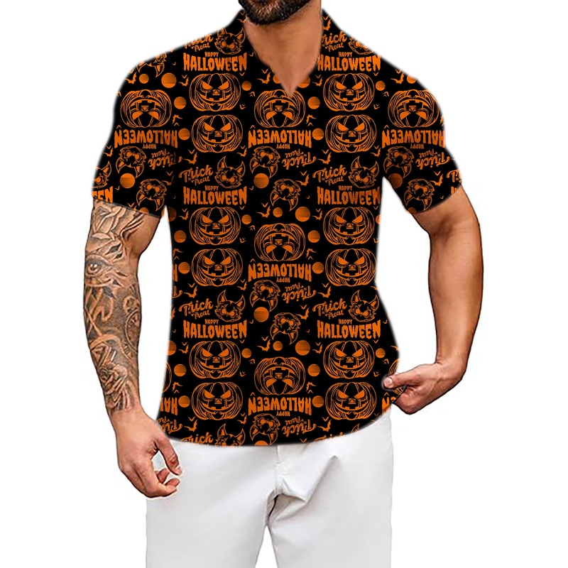 Men’s Coconut Palm Happy Halloween Pumpkin V Neck Golf Polo Shirts