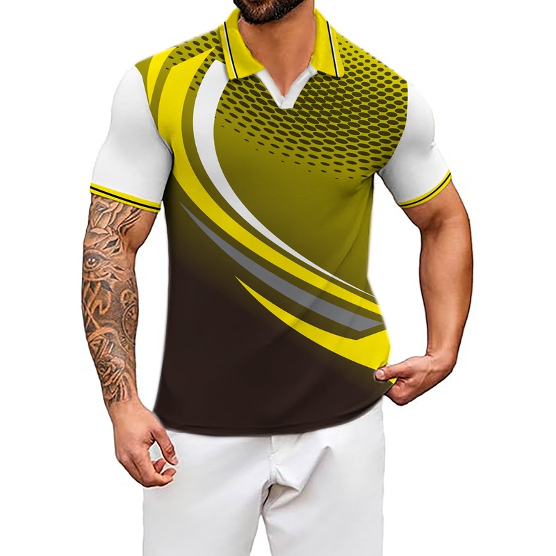 Men’s Coconut Palm Yellow Black Custom Sport Team Competition Uniforms V Neck Golf Polo Shirts