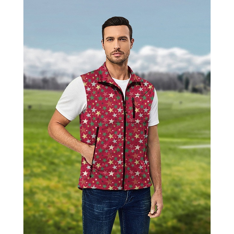 Men’s Colorful Stars Christmas Lightweight Softshell Vest Sleeveless Jacket for Golf Windproof Waterproof