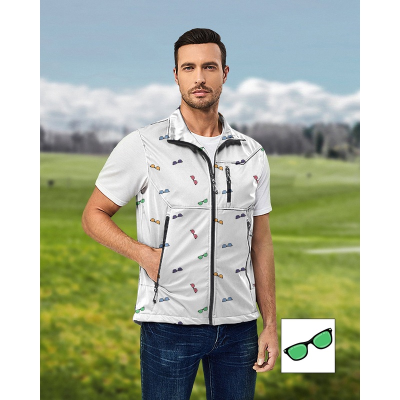 Men’s Colorful Sunglass Custom The Background Color Lightweight Softshell Vest Sleeveless Jacket for Golf Windproof Waterproof