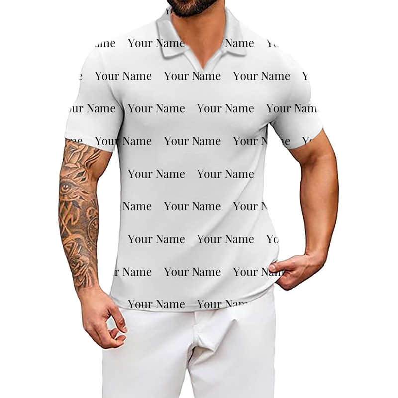 Men’s Custom name white V Neck Golf Polo Shirts