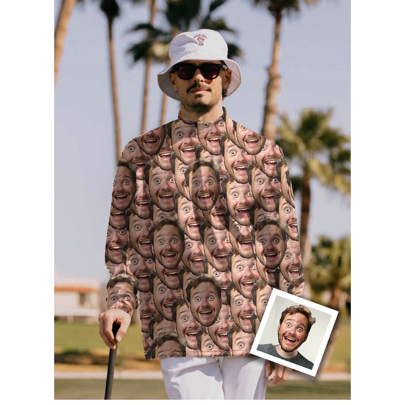 Men’s Custom Photo All Faces Pullover High neck Long/Short sleeve T-Shirt
